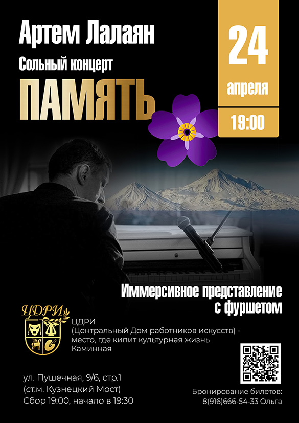 «Память» — это час живой, искренней музыки Артема Лаляна, где каждая нота — как молитва, а каждый аккорд — как прикосновение к истории.