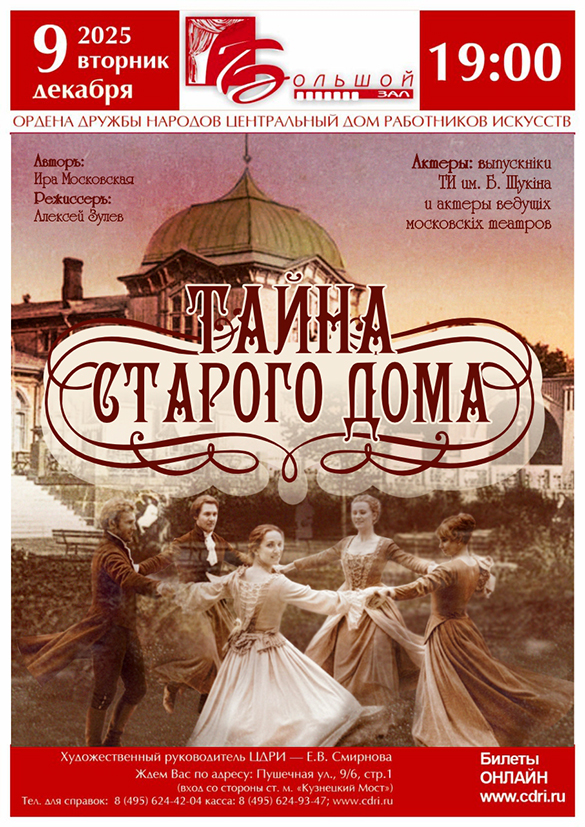 Музыкально-драматический спектакль «Тайна старого дома» расскажет об очень уникальной и так внезапно оборвавшейся эпохе русской усадьбы, в которой некогда играли в карты, музицировали, пили чай у самовара и рисовали семейные портреты.