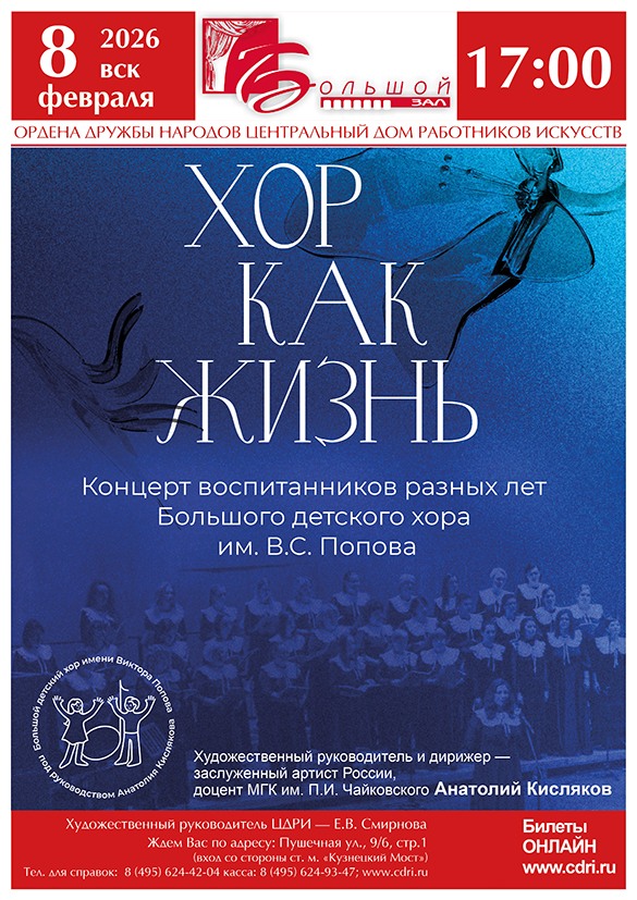 В концерте «ХОР КАК ЖИЗНЬ» выступят воспитанники БДХ им. В.С. Попова. Те, кто когда-то детьми пел в знаменитом коллективе и хор для них стал неотъемлемой частью жизни. У хора выпускников активная концертная жизнь, гастроли, общие программы с детскими группами БДХ.