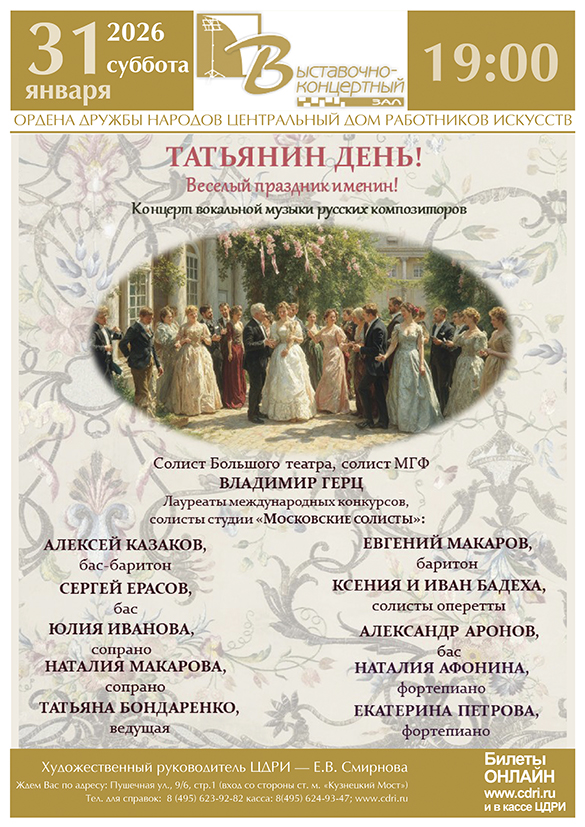 Прозвучат отрывки из романа А.С. Пушкина и сцены из оперы П.И. Чайковского «Евгений Онегин», а также лучшая вокальная музыка русских композиторов на стихи русских поэтов!